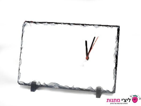 הדפסה על אבן בזלת עם שעון ניתן להדפיס כל תמונה וכיתוב מגיע עם זוג מעמדים מפלסטיק קשיח.